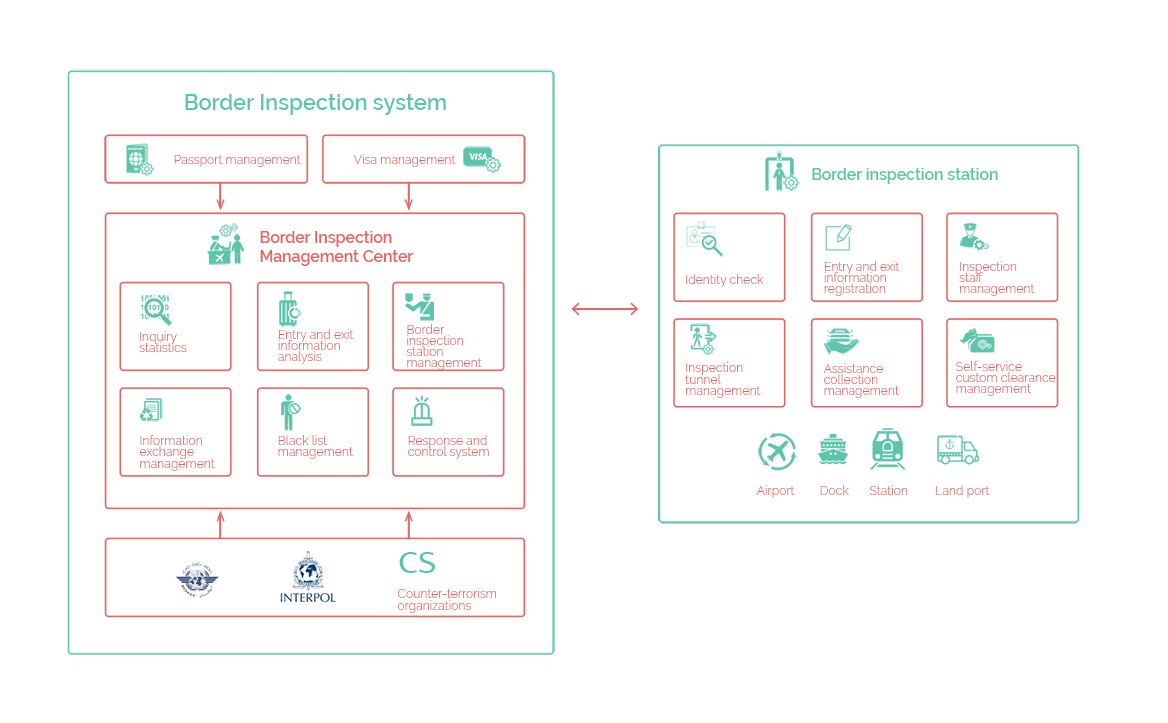 International interconnection: Data connection with international organizations, and used for ideσntity authentication, personnel management upon entry and exit.